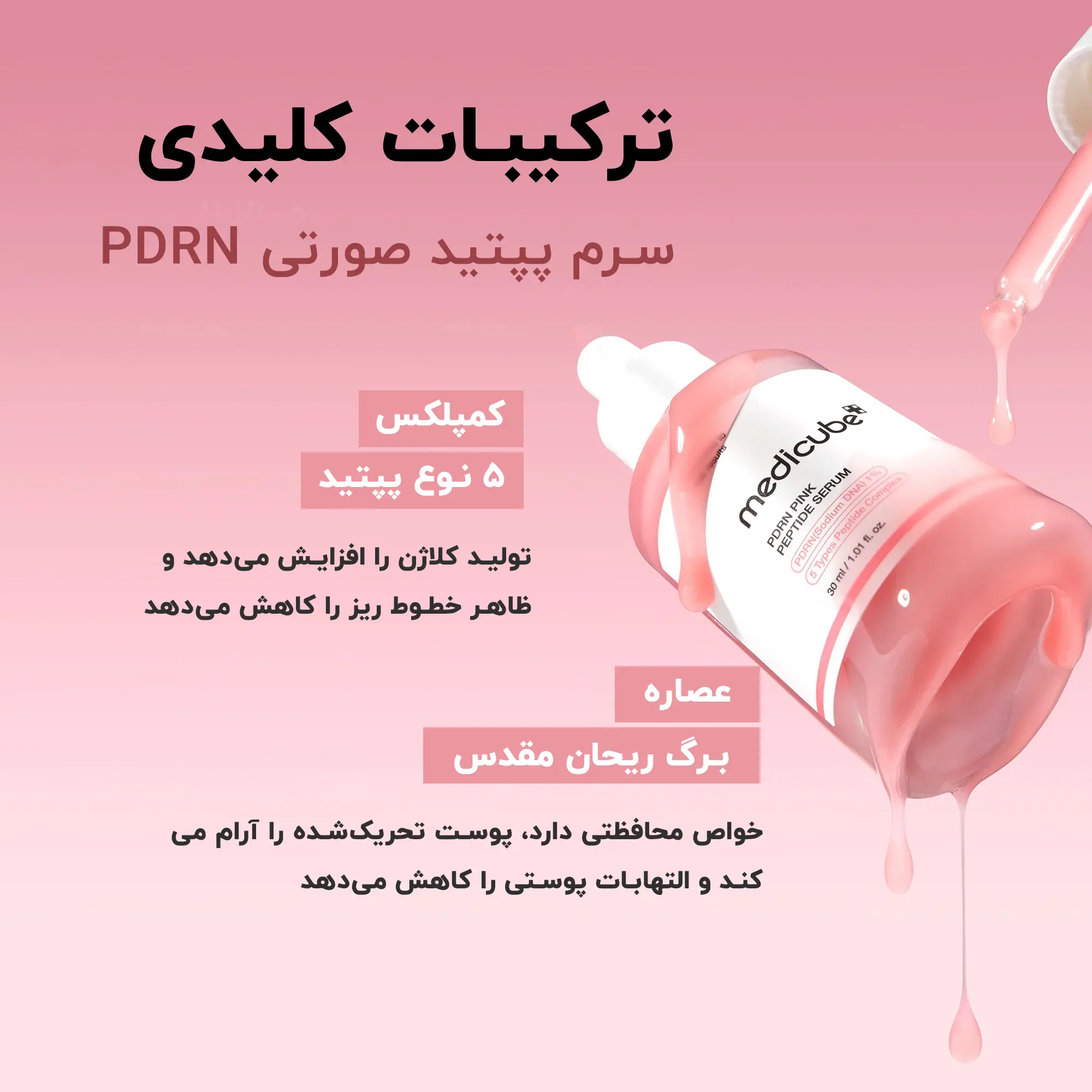 سرم پپتاید صورتی PDRN مدی‌کیوب | ترمیم و جوانساز پوست | Medicube